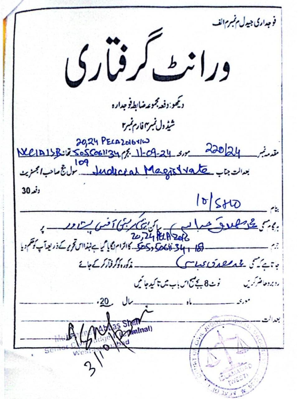 عدالت نے تفتیشی ٹیم کی درخواست پر تینوں نامزد افراد کے خلاف وارنٹ گرفتاری جاری کرنے کے احکامات جاری کیے۔