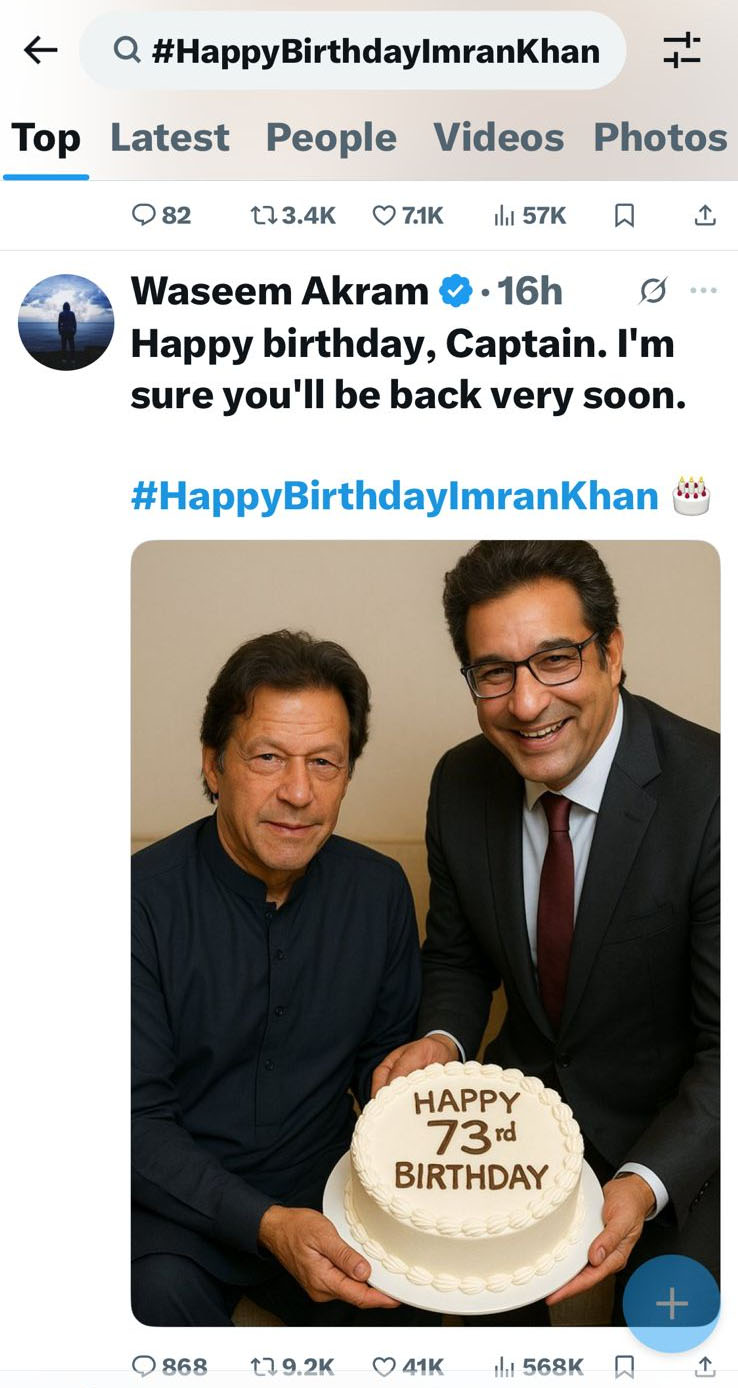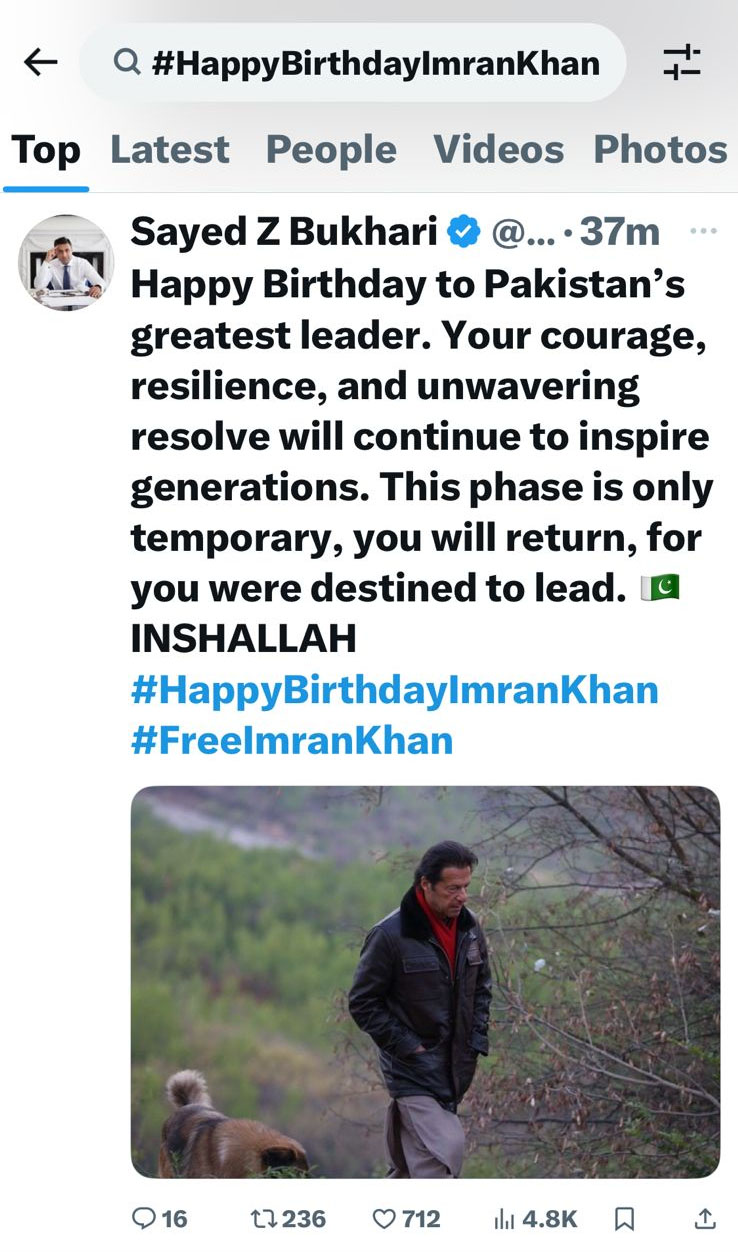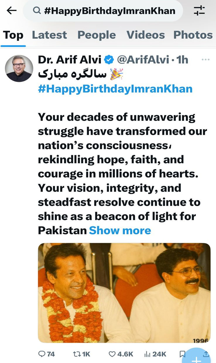 عمران خان کی آج 73 ویں سالگرہ ہے، پارٹی کارکنوں کی جانب سے سوشل میڈیا پر بانی پی ٹی آئی کو سالگرہ کی مبارکباد پیش کی گئی ہے مگر خیبر پختونخوا میں پی ٹی آئی اور حکومت کی جانب سے بانی پی ٹی آئی کی سالگرہ کے حوالے سے کوئی تقریب منعقد نہیں کی گئی ہے۔