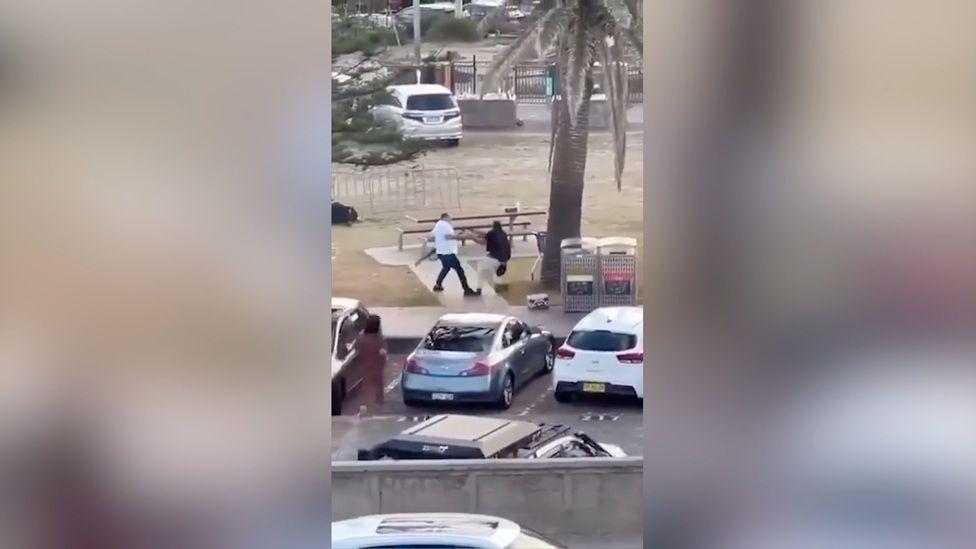 ایک عینی شاہد کے کیمرے سے بنائی گئی اس فوٹیج میں ایک شخص کو مبینہ حملہ آور سے لڑتے اور بعد میں اس کا ہتھیار چھینتے ہوئے دکھایا گیا ہے۔