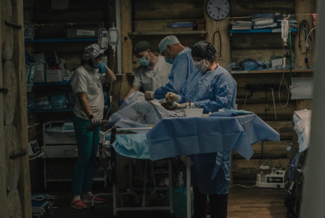 ہسپتال میں ایک سرجری یونٹ ہے جو کارڈیک مانیٹر اور وینٹی لیٹرز سے لیس ہے۔ فوٹو: گارڈینسرجن ہولوواشینکو نے کہا کہ اُن کو کچھ زخمی فوجیوں کو فضائی حملوں کے خطرے کی وجہ سے نکالنے کے لیے گھنٹوں یا کئی دن تک انتظار کرنا پڑا۔ ’ہمارے پاس دو شدید زخمی تھے جو صبح 3 بجے پہنچے۔ مجھے ان میں سے ایک کی دونوں ٹانگیں کاٹنا پڑیں کیونکہ اس کا کوئی متبادل علاج موجود نہ تھا۔